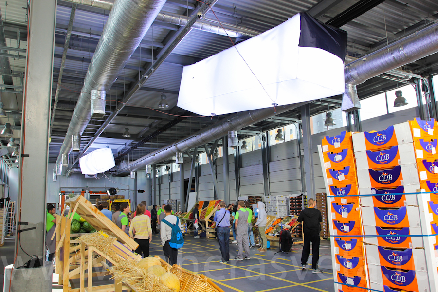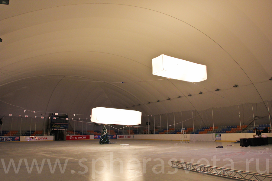 8. Аэростаты под потолком павильона равномерно заливают площадку.