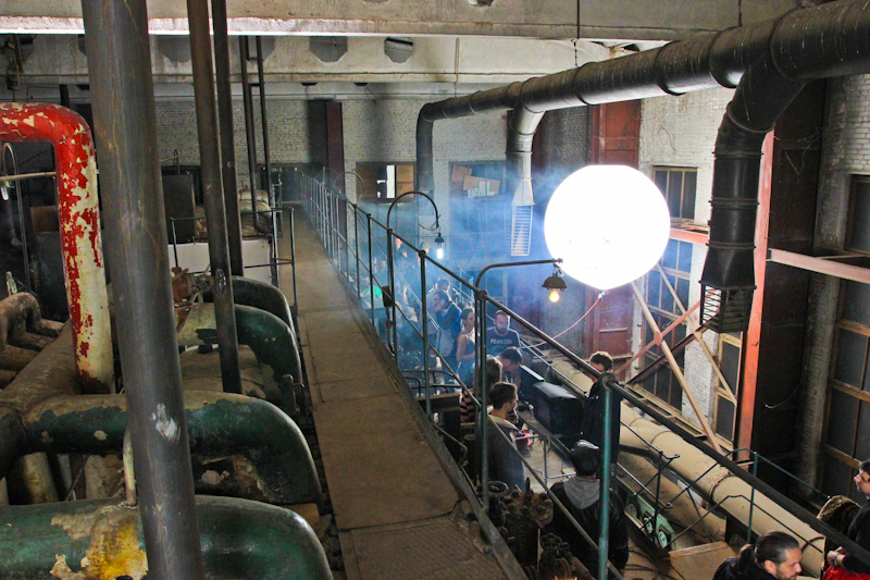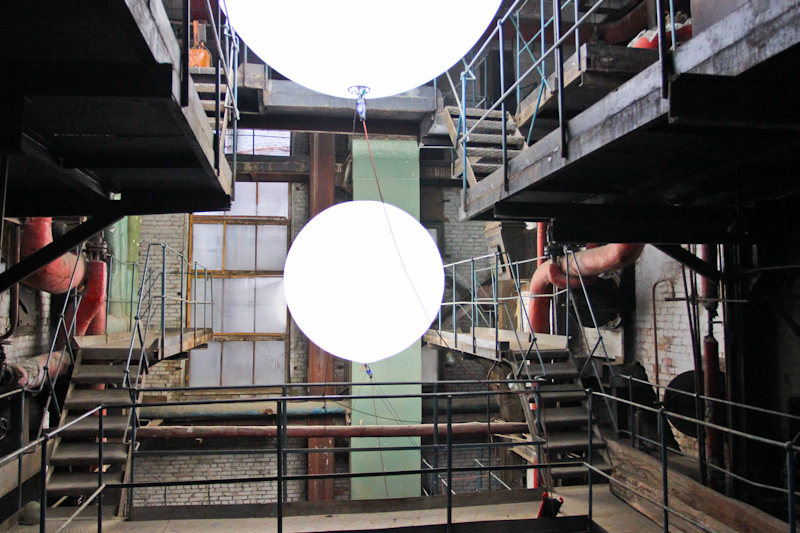 В таких декорациях гелиевая сфера весьма удобна для осветителей - не нужно лезть по грязным трубам на верхотуру и тащить за собой железо.