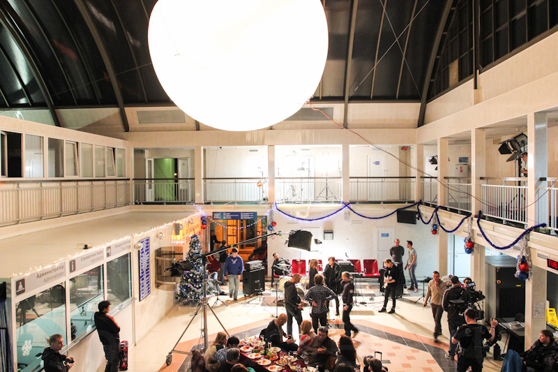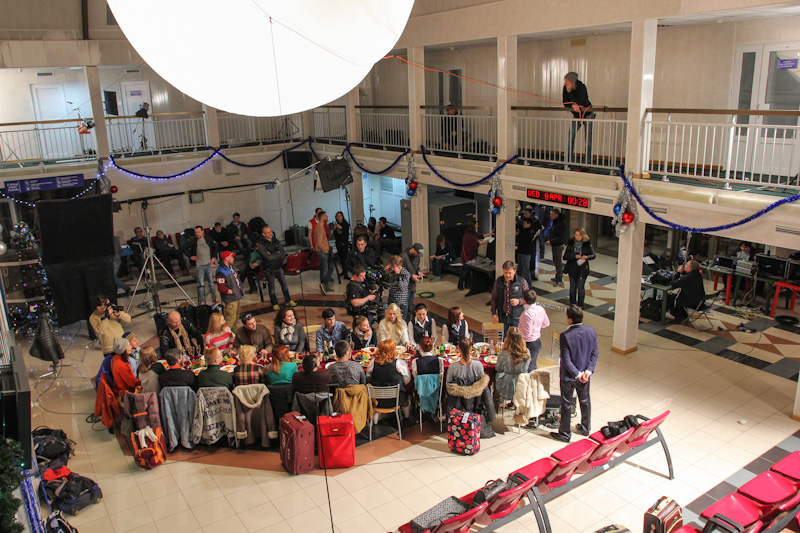 4. На второй съёмочный день была поднята вторая сфера, которая позволила осветить весь зал ожидания. Отпала необходимость в передвижениях сфер