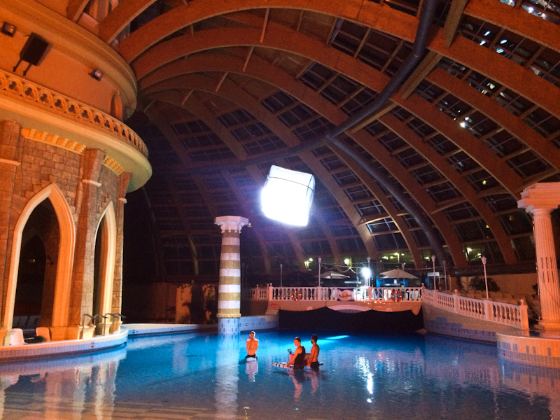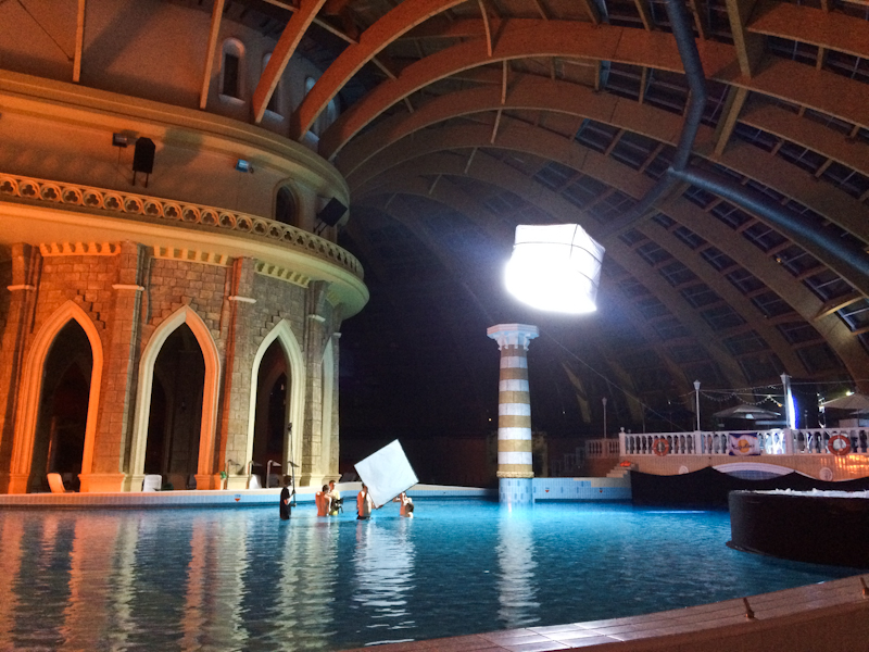 В аквапарке "Карибия" поснимали несколько сцен телесериала "Универ" с помощью малого гелиокуба. Мощность источника света 4 кВт.
