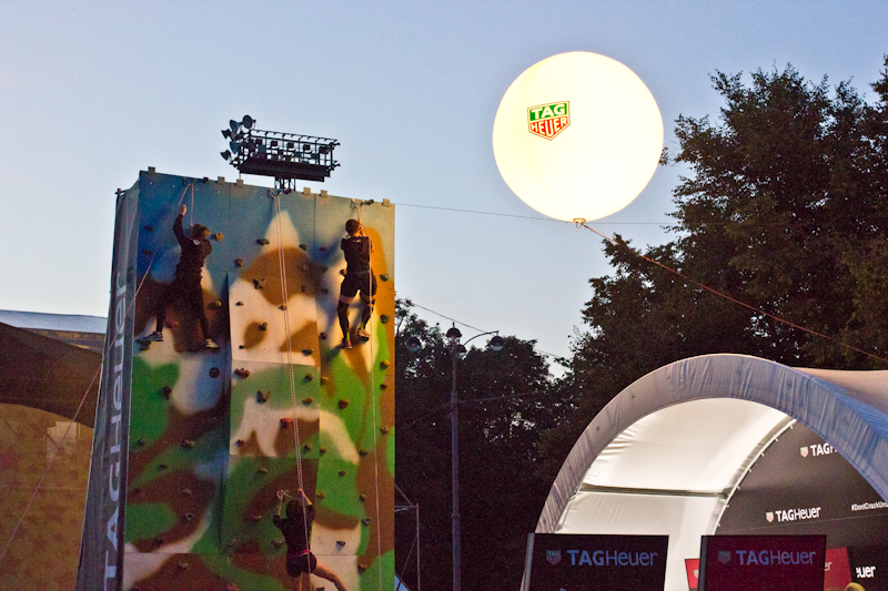 Компания TagHeuer выбрала малый аэростат нашего производства для освещения своего стенда, а также возведенного рядом скалодрома.