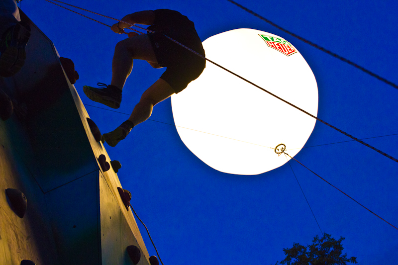 Осветительный шар обеспечивал качественную подсветку вертикальной плоскости этого спортивного снаряда, что позволило участникам покорять его до глубокой ночи.