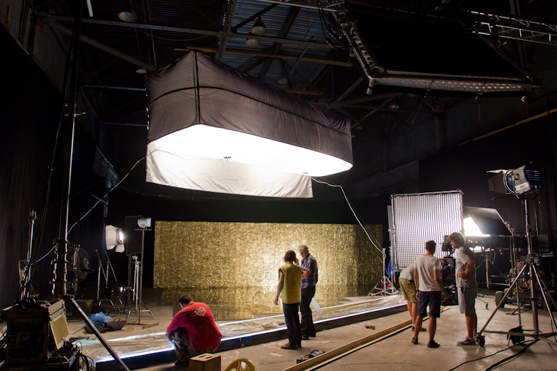 Одной из декорацией был подиум, по которому модель должна была пройти несколько метров. Для равномерной засветки оператором Юрием Кокошкиным была использована гелиотруба длиной 6 метров и диаметром 1,8 метра.