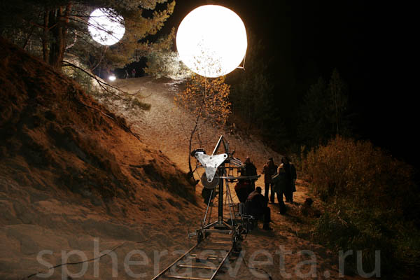 Для подсветки съёмочной площадки применялись 4 летающих световых аэростата диаметром 3,5 метра.