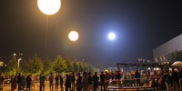 | Три гелиевых шара освещают киносъёмочную площадку в парке Музеон |