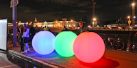 | Огромные светодиодные сферы на земле и Луна в небе |