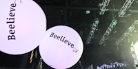 | На новогоднем корпоративе Билайн сенсорные сферы играли роль передаваемых сообщений |