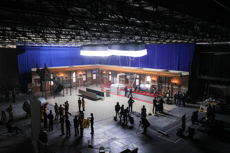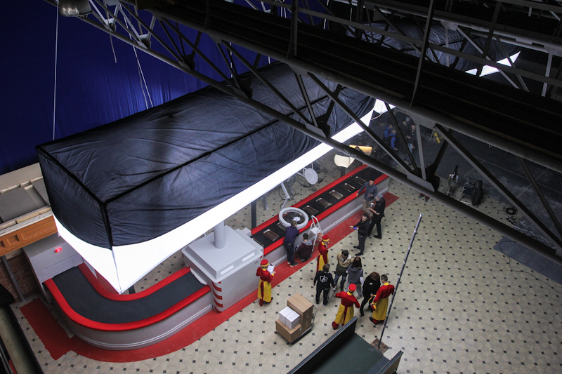В какой-то момент необходимо было разместить трубы между колосников. На любые перемещения с помощью двух осветителей было затрачено не более 5 минут.
