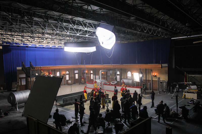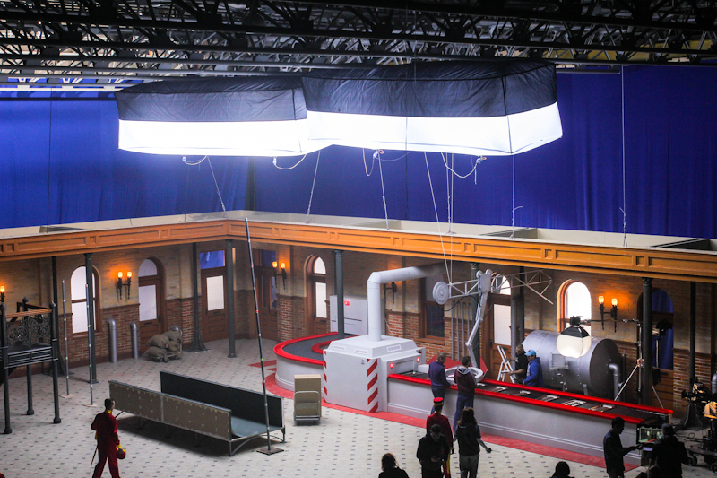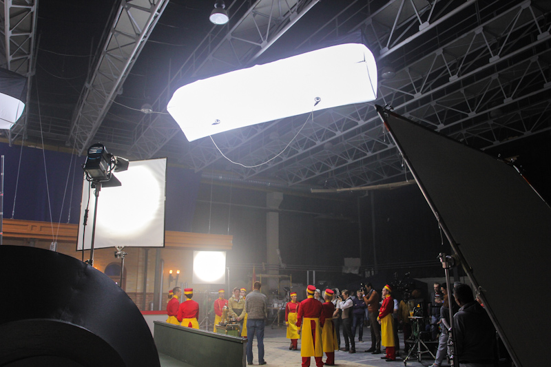 Балласты были установлены на колосниках. Сигнальный кабель длиной 40 метров позволял легко и быстро передвигать приборы на разные края павильона.