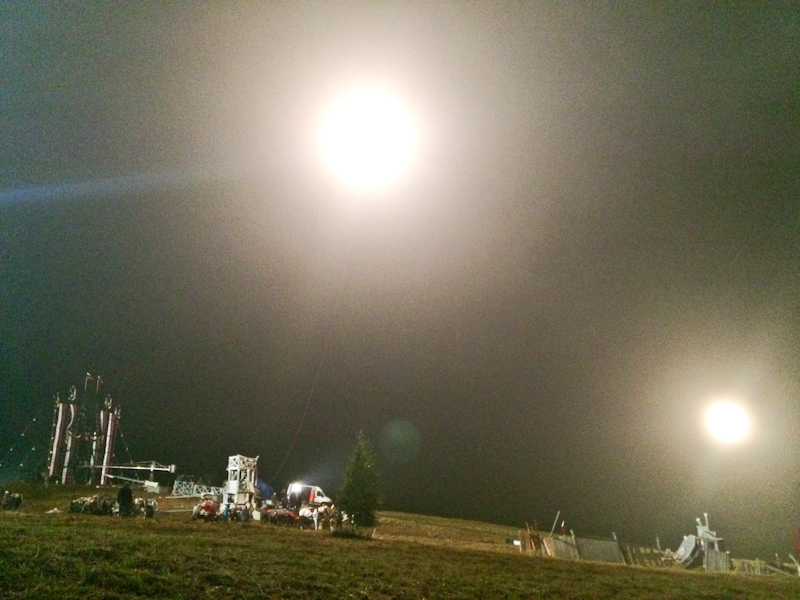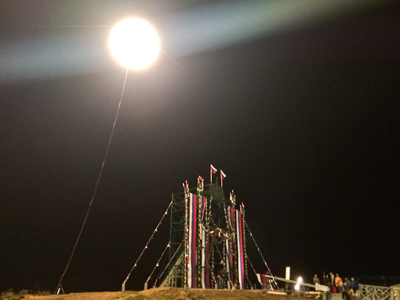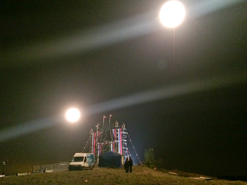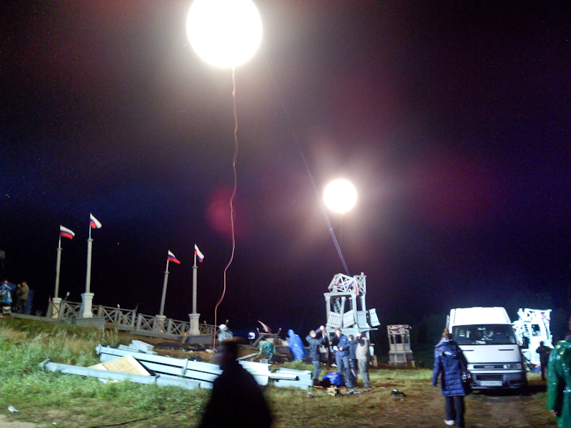 Шары поднимались на высоту 40 метров и обеспечивали подсветку фона и грунта на протяжении четырех смен.