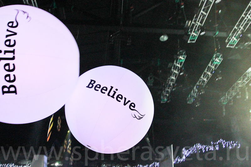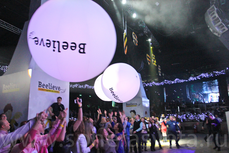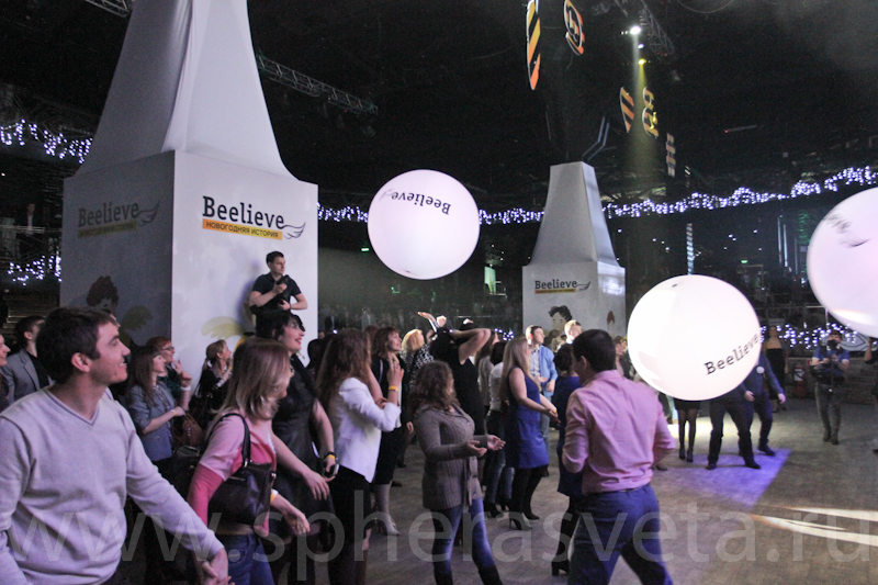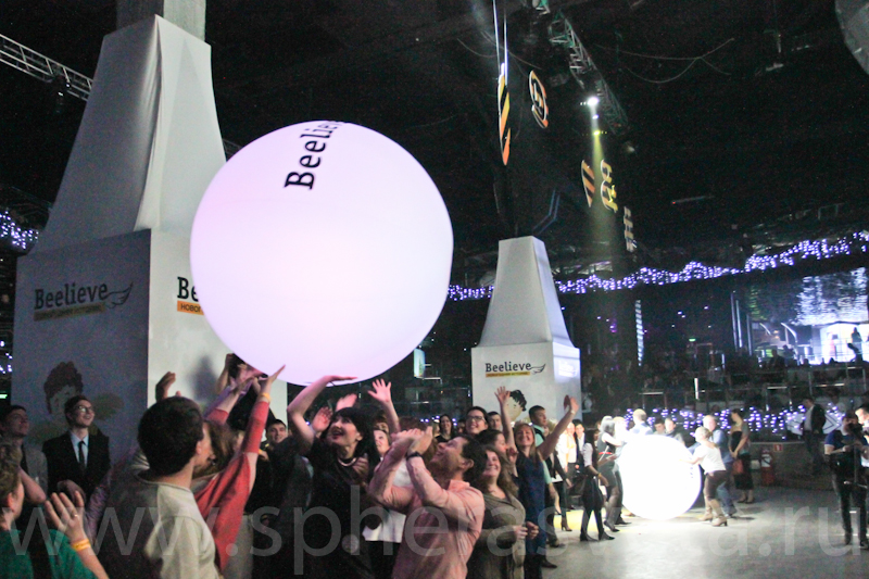 По команде аниматоры выкинули в зал три сияющих сенсорных сферы.