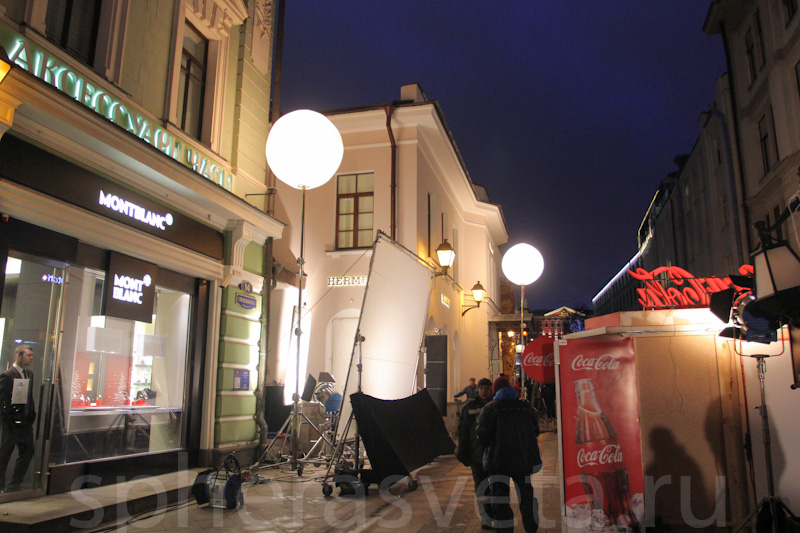 В Столешниковом переулке прошли съёмки с применением осветительного оборудования нашей компании.