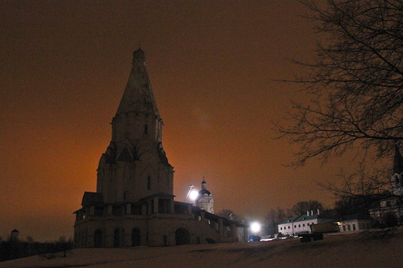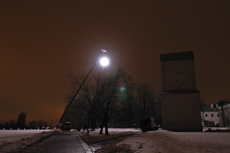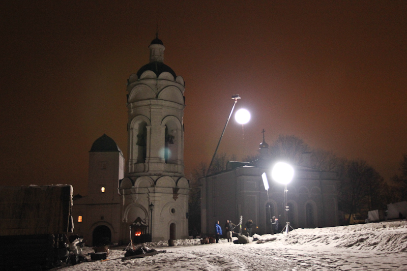 Во время сцены на баллюстраде шатровой церкви Вознесения мы играли роль Луны и заливали тепло-холодным светом все вокруг.