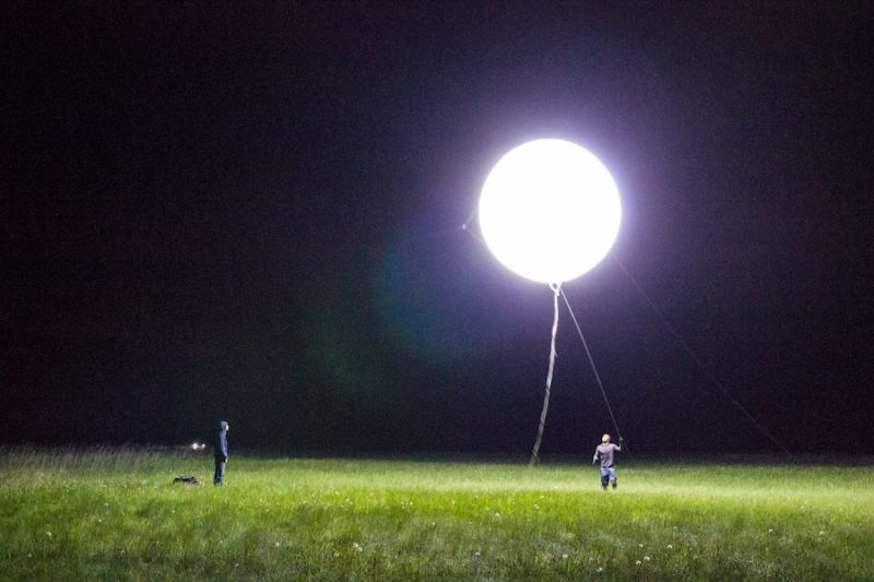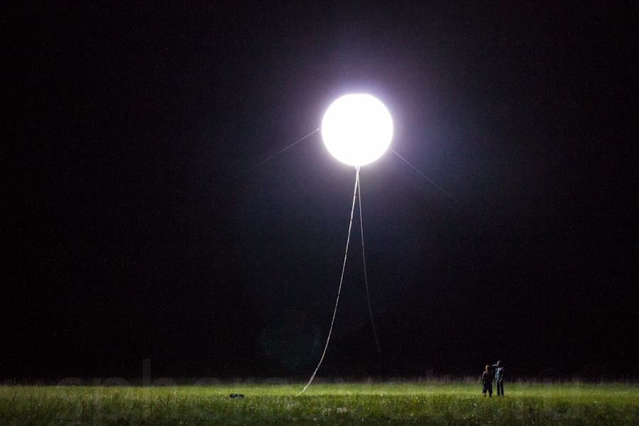 Световая сфера (гелиосфера) была использована в качестве источника заполняющего света при ночных съёмках.