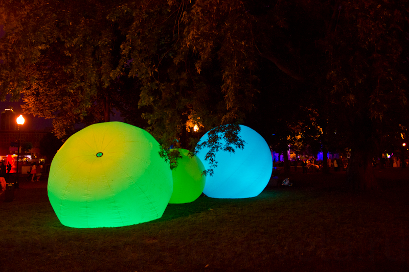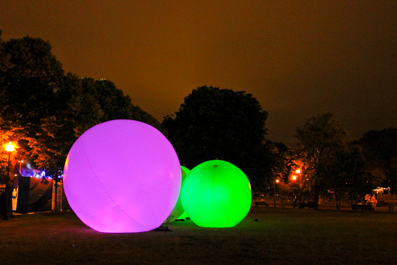 Мы также приняли участие в оформлении открытых пространств парка и разместили на зеленой траве несколько огромных светодиодных шаров диаметром от 1 метра и до 5 метров.