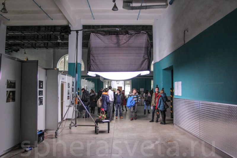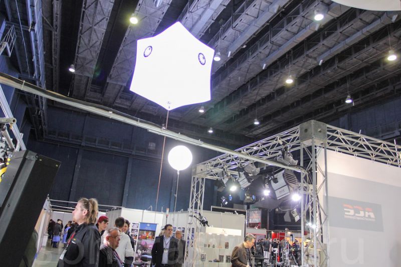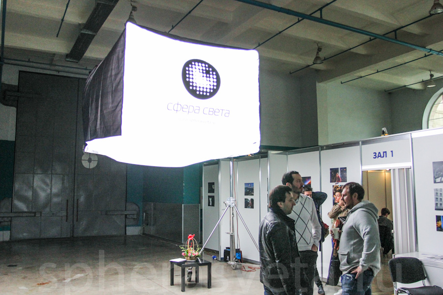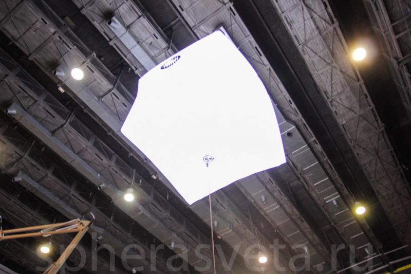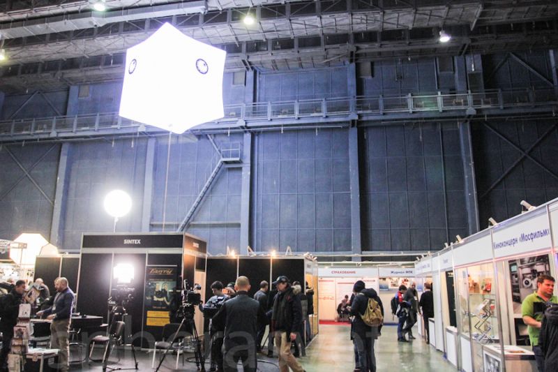 5. В фойе выставки стояла другая наша новинка - подвесной гелиокуб. Такой гелиокуб имеет размеры 2,2 х 2,2 метра и высотой 1, 5 метра. Мощность 2,5 кВт (Лампа OSRAM HMI2500).