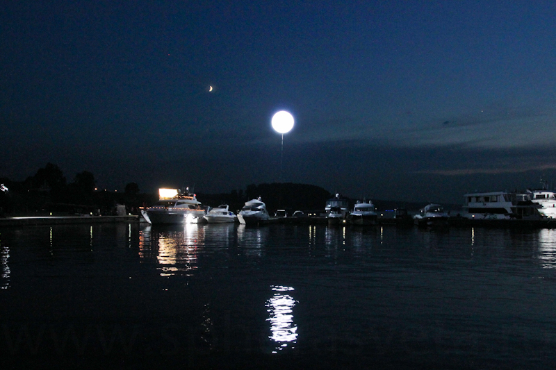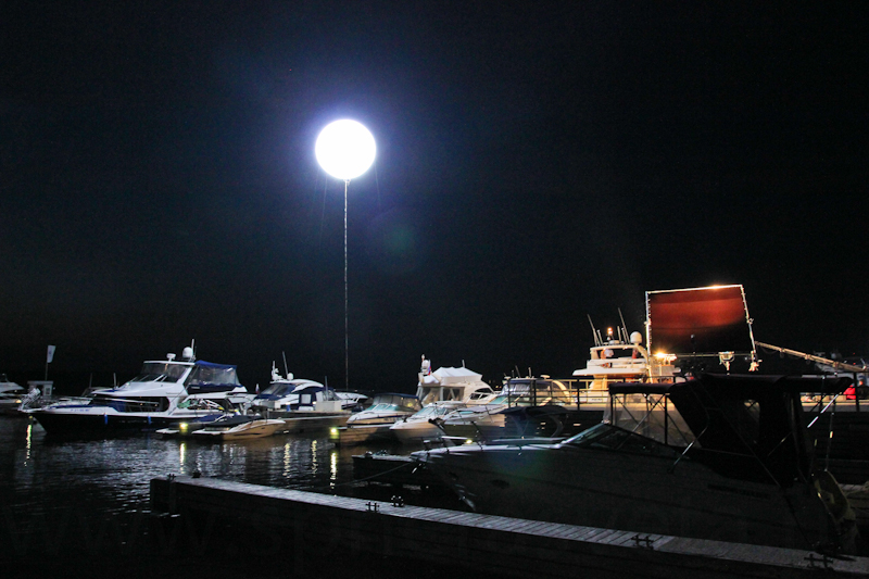 Гелиевый шар использовался при съёмках сцены в яхт-клубе. Сферу закрепили на пирсе и подняли на высоту 20 метров.