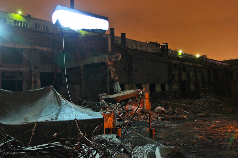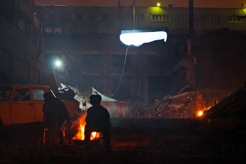 Декорации были построены на территории заброшенного завода на окраине Москвы. Производственные корпуса предназначались под снос, что позволило создать декорации настоящего разрушенного города.